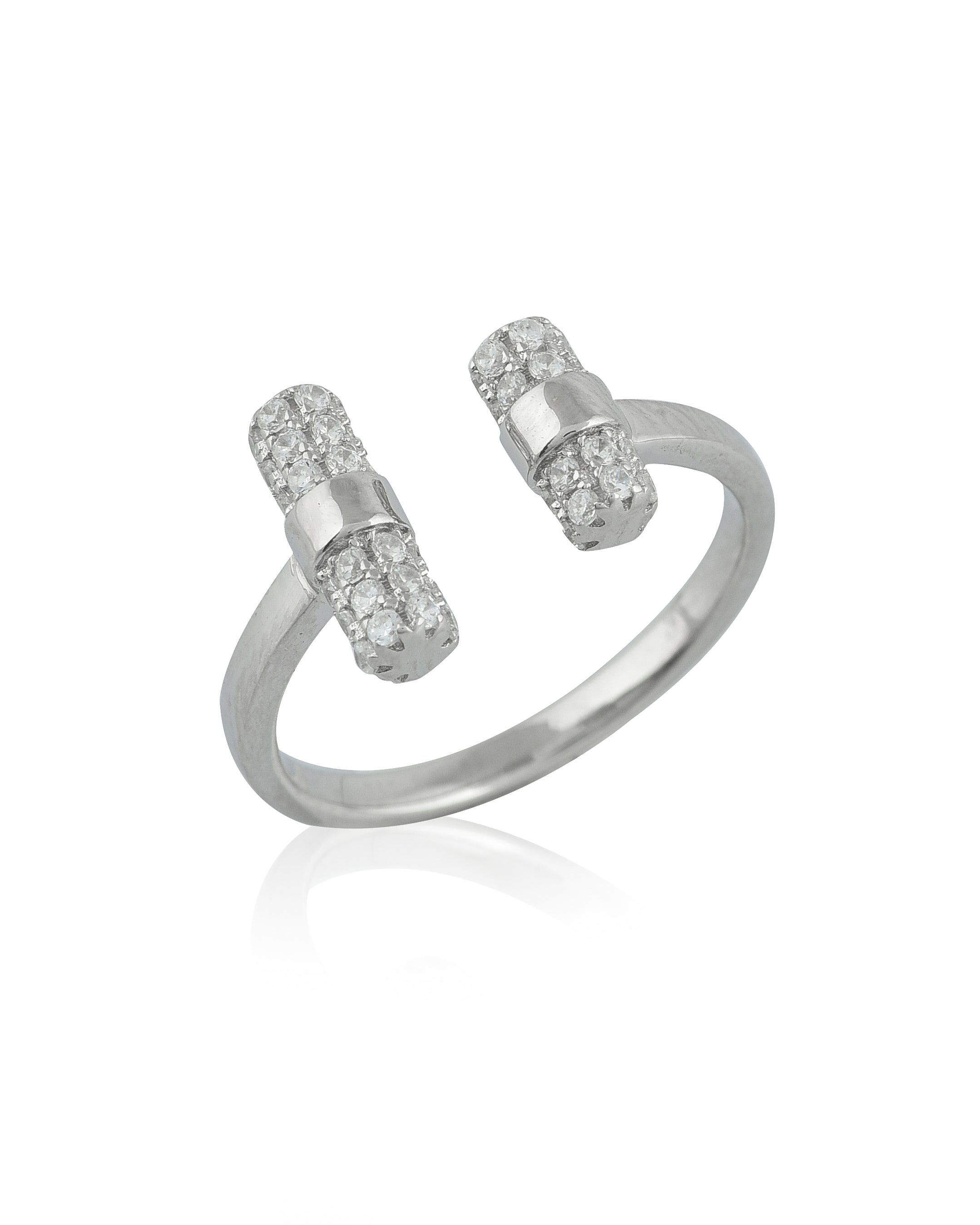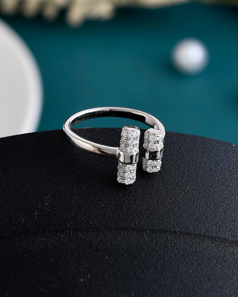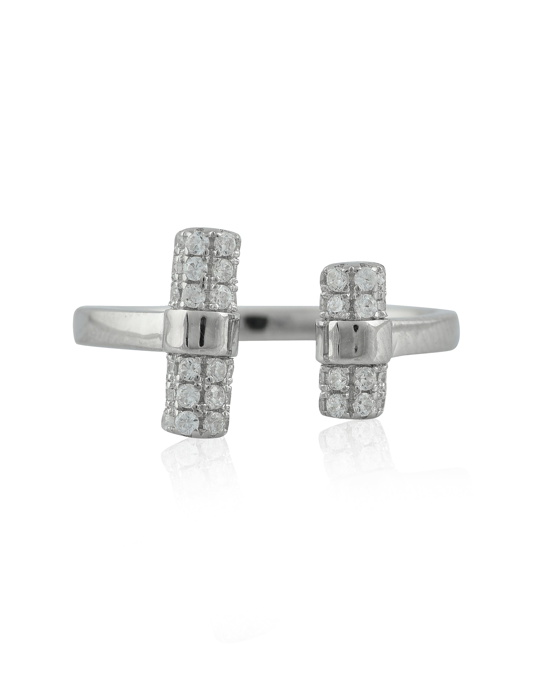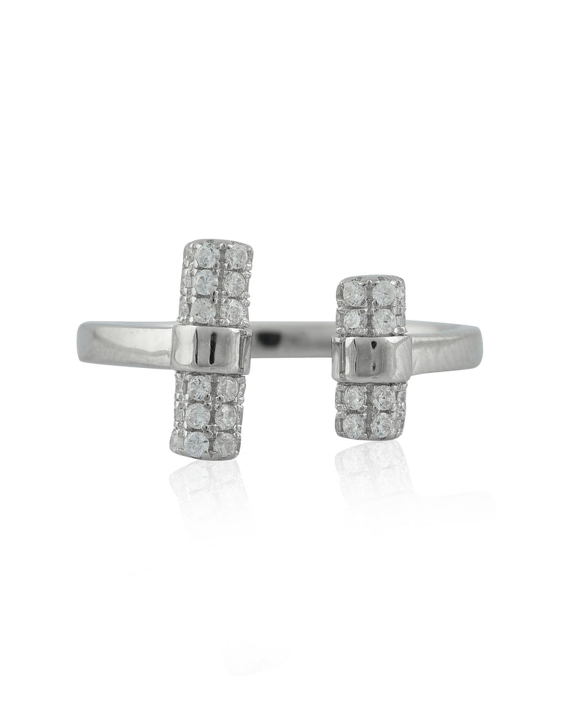 SILVER PARALLEL DIAMOND CYLINDER RING