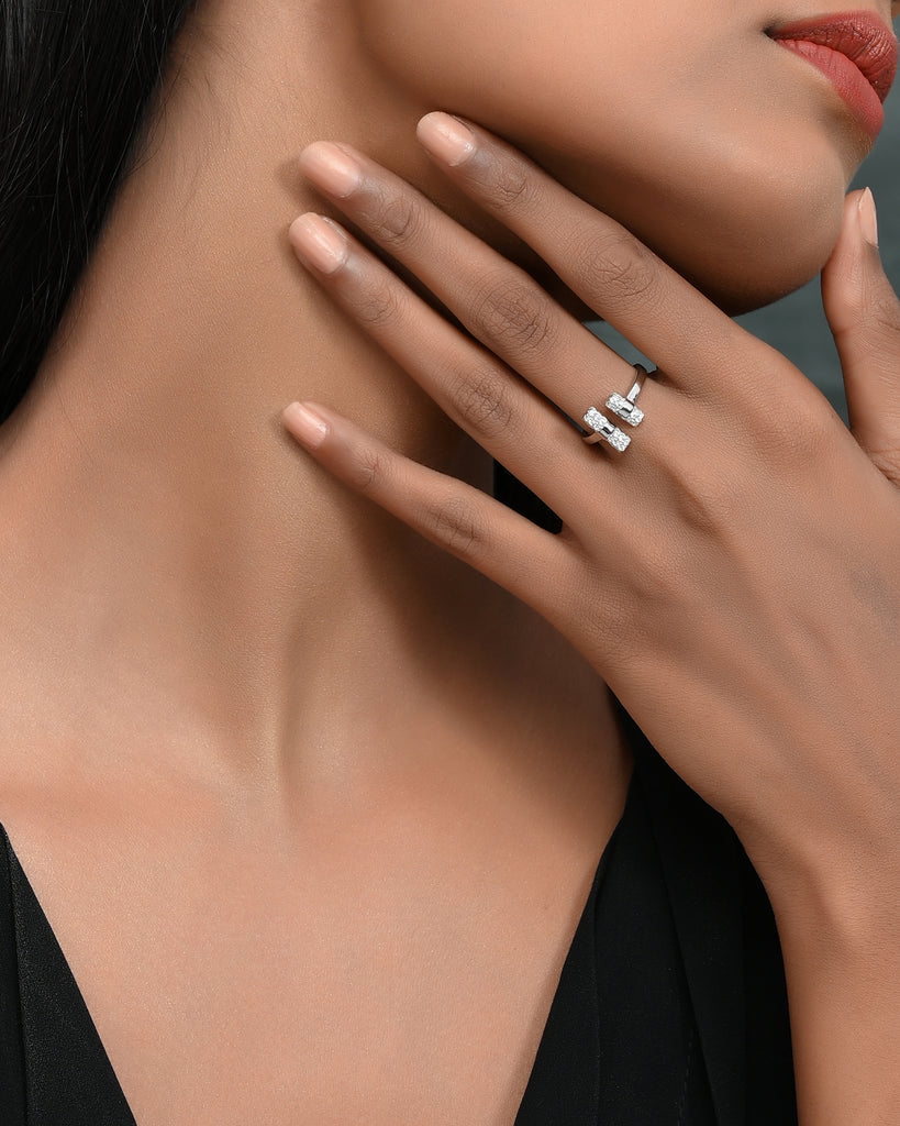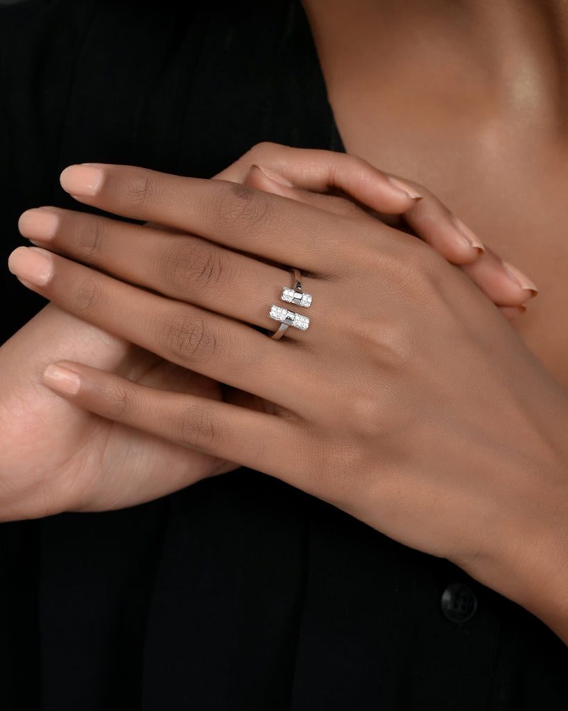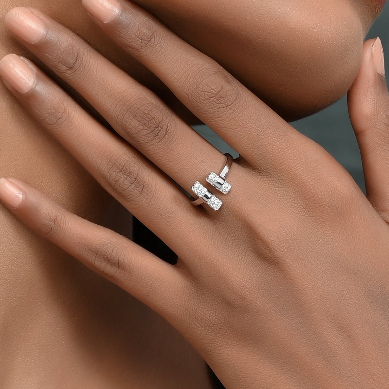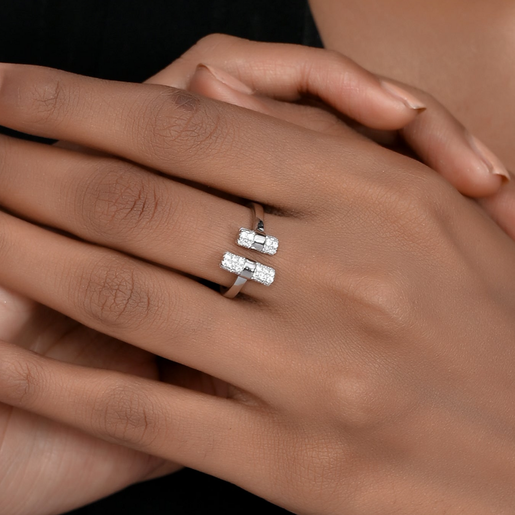 SILVER PARALLEL DIAMOND CYLINDER RING