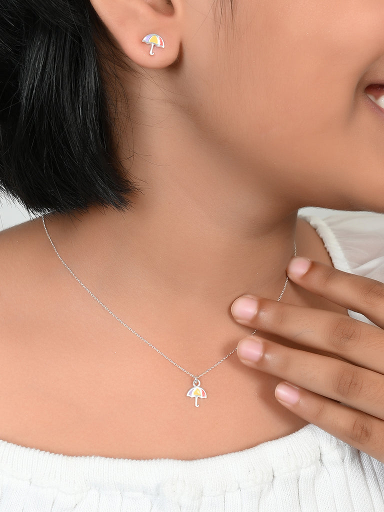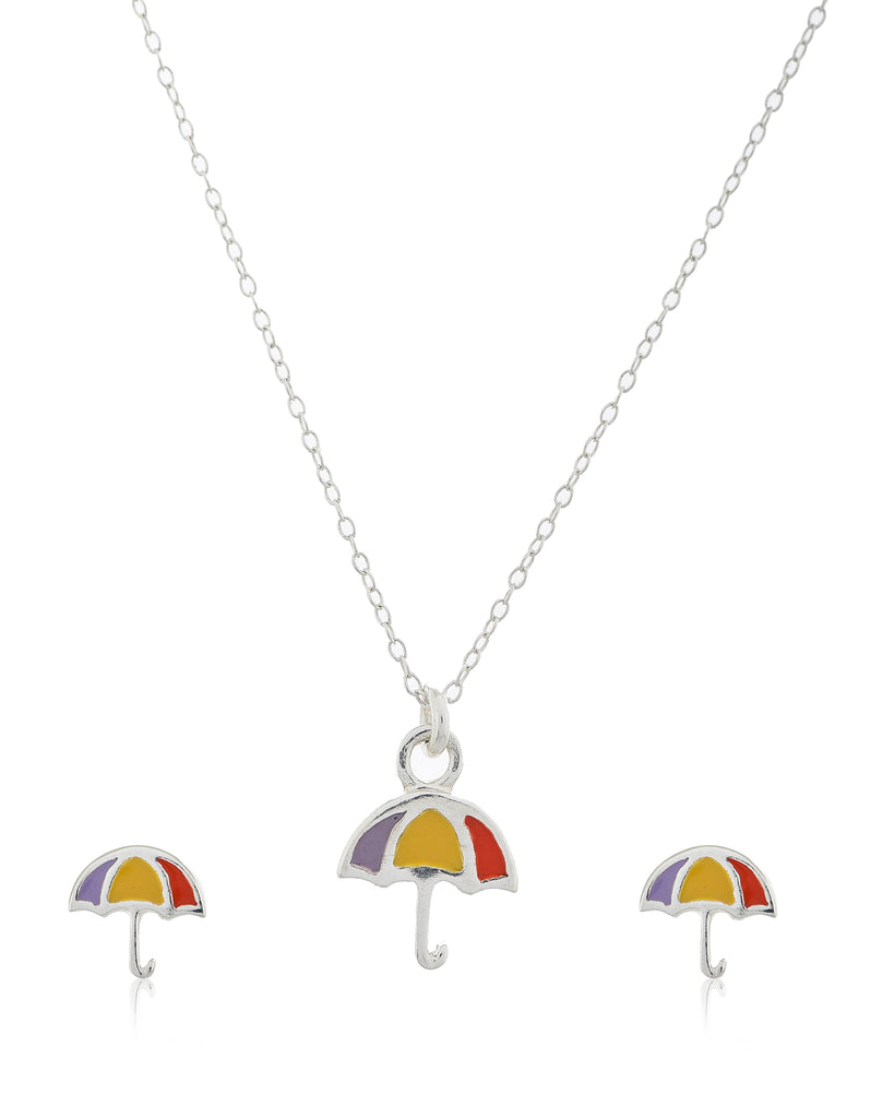 SILVER MULTICOLOR UMBRELLA NECKLACE SET