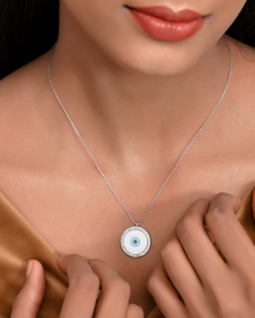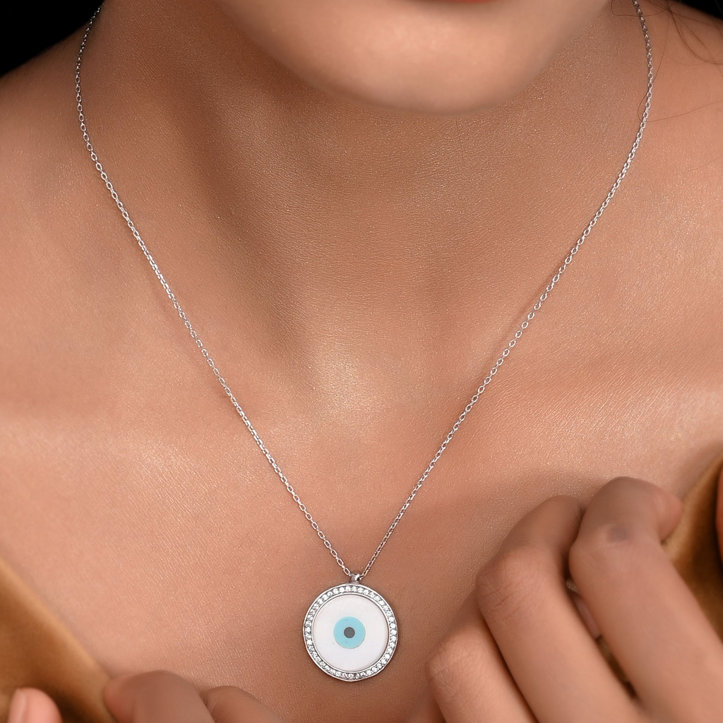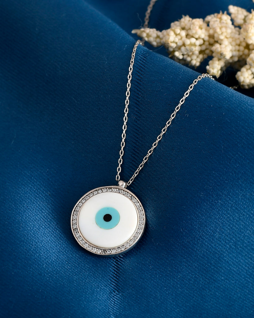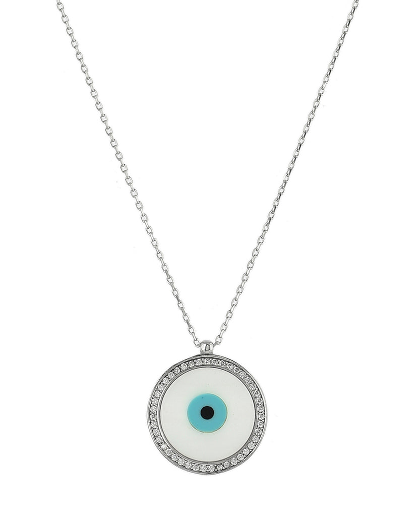 SILVER PEARL CIRCLE EVILEYE NECKLACE