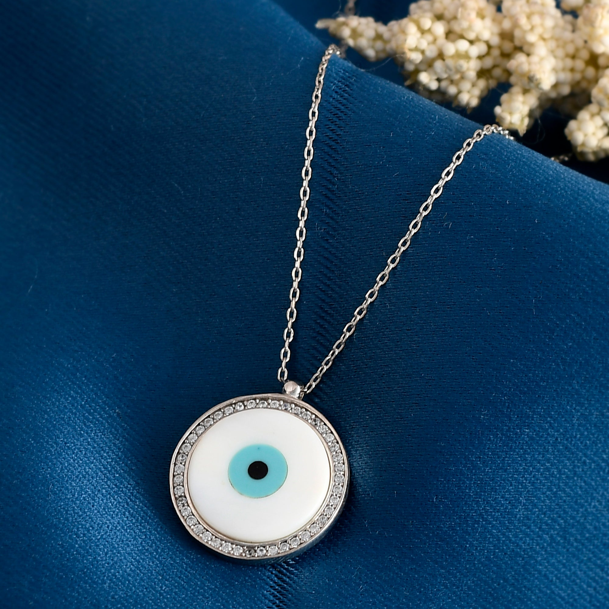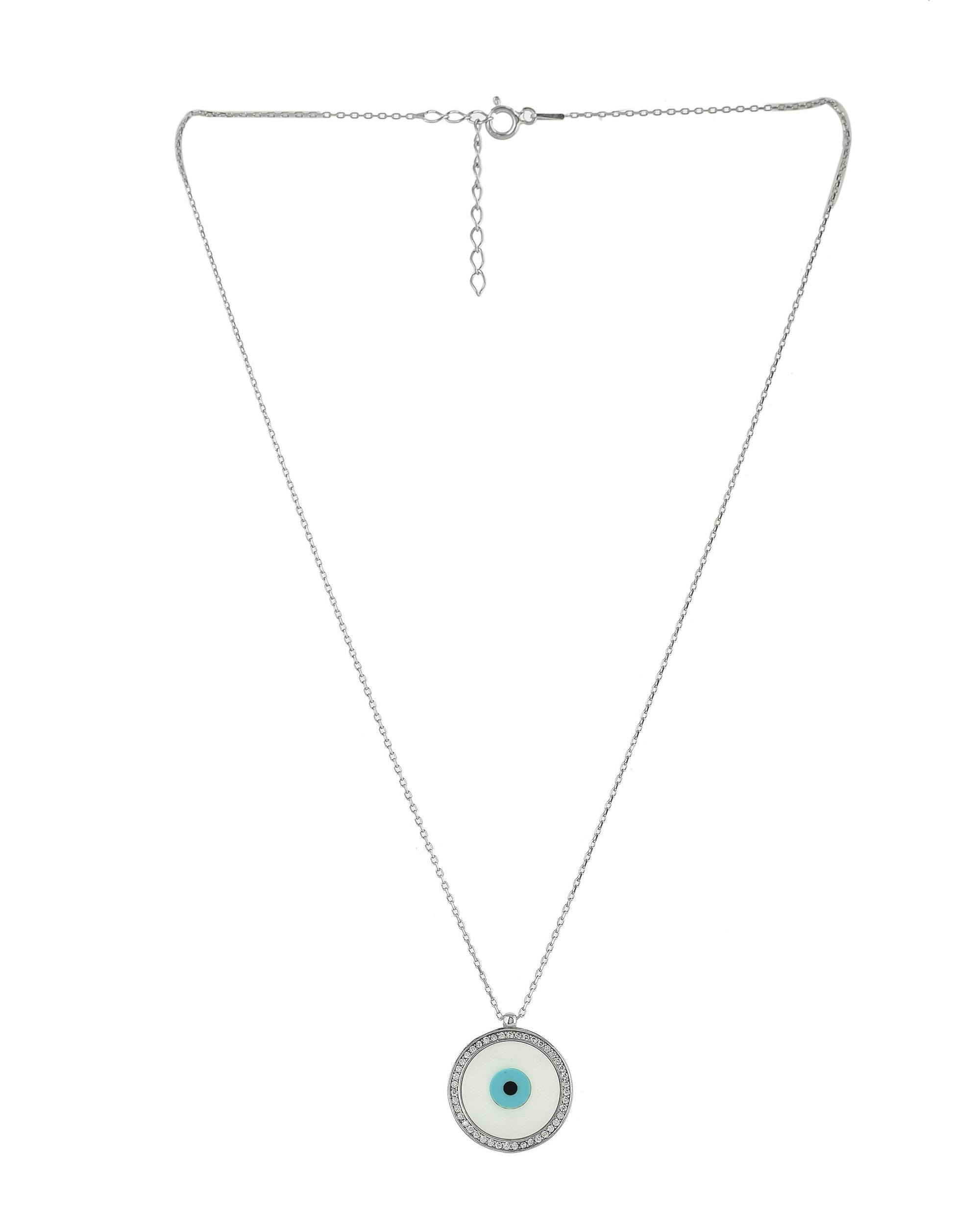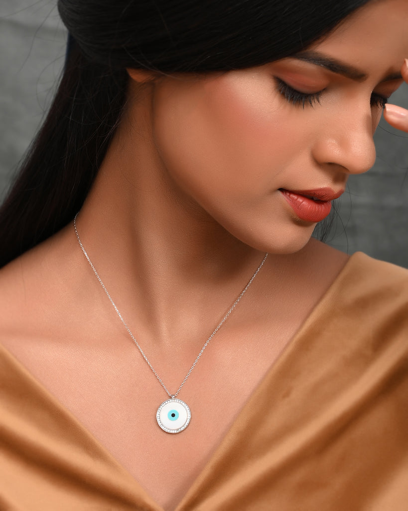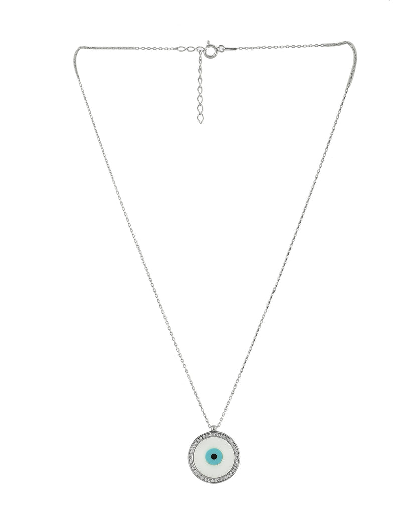 SILVER PEARL CIRCLE EVILEYE NECKLACE