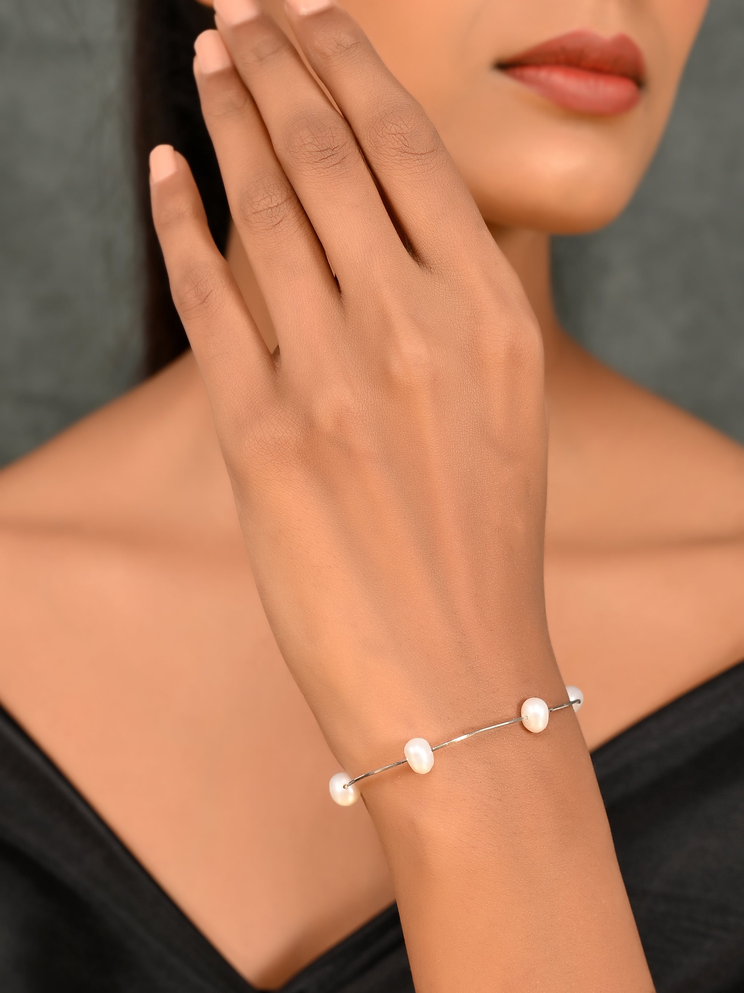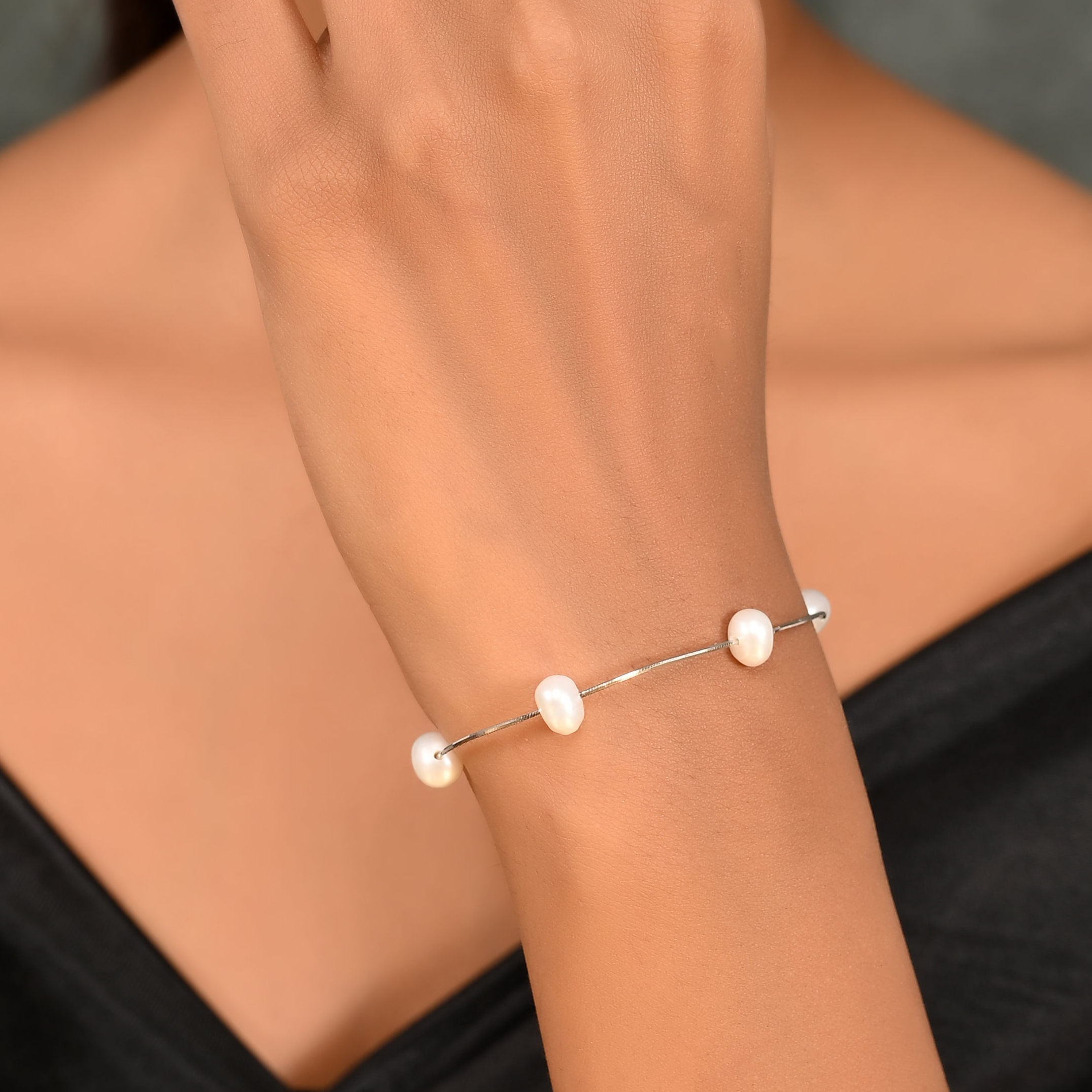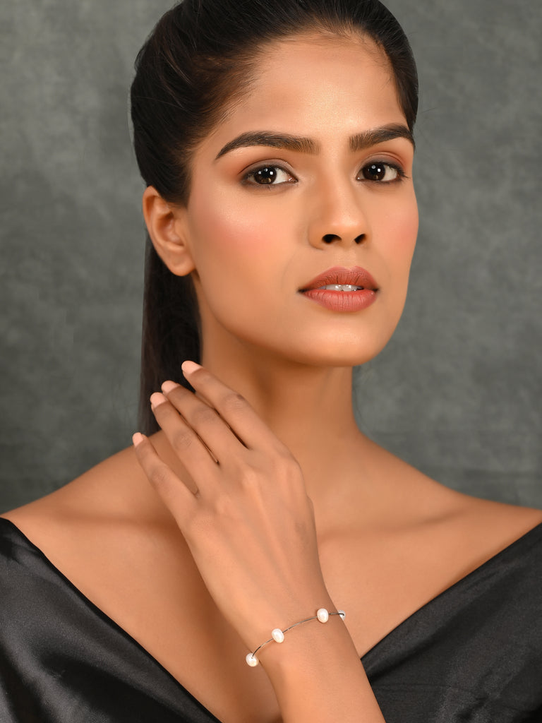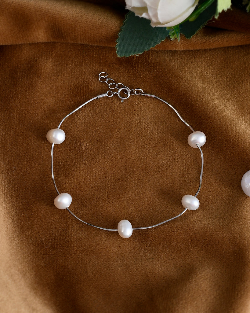 SILVER TANGLED PEARL BRACELET